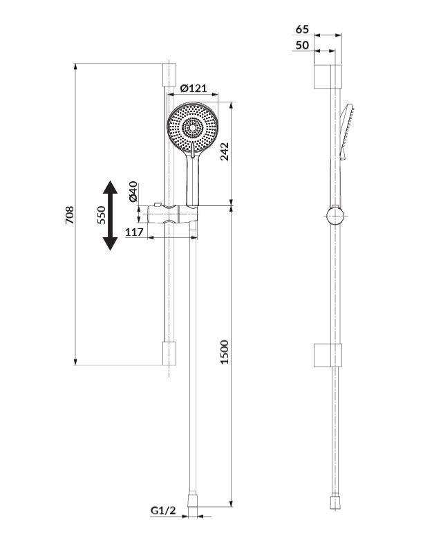 Sprchová sada, ručná sprcha s 5 funkciami z ABS, tyč z nerezovej ocele 80 cm, ručná sprcha EasyClean, kovová opletená hadica 1,5 m,