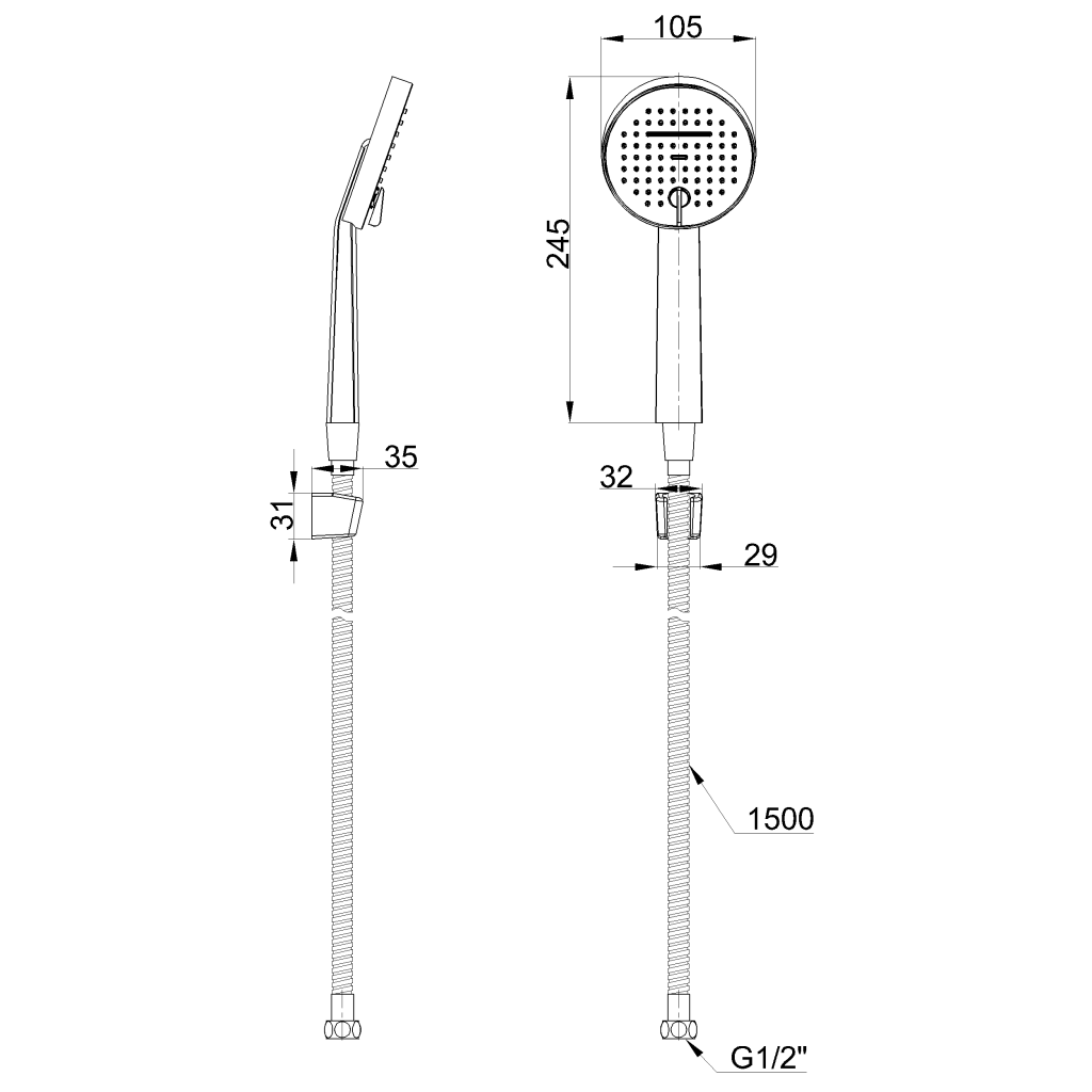 Okrúhla sprchová hlavica ponúka dve funkcie prúdu - klasický a kaskádový - ktoré zaisťujú príjemný a relaxačný sprchový zážitok. Súčasťou hlavice je tiež integrovaný systém prevzdušňovania vody , ktorý znižuje spotrebu a prispieva k ekologickej prevádzke bez kompromisu v komforte a sprchová hadica dlhá 1500 mm.