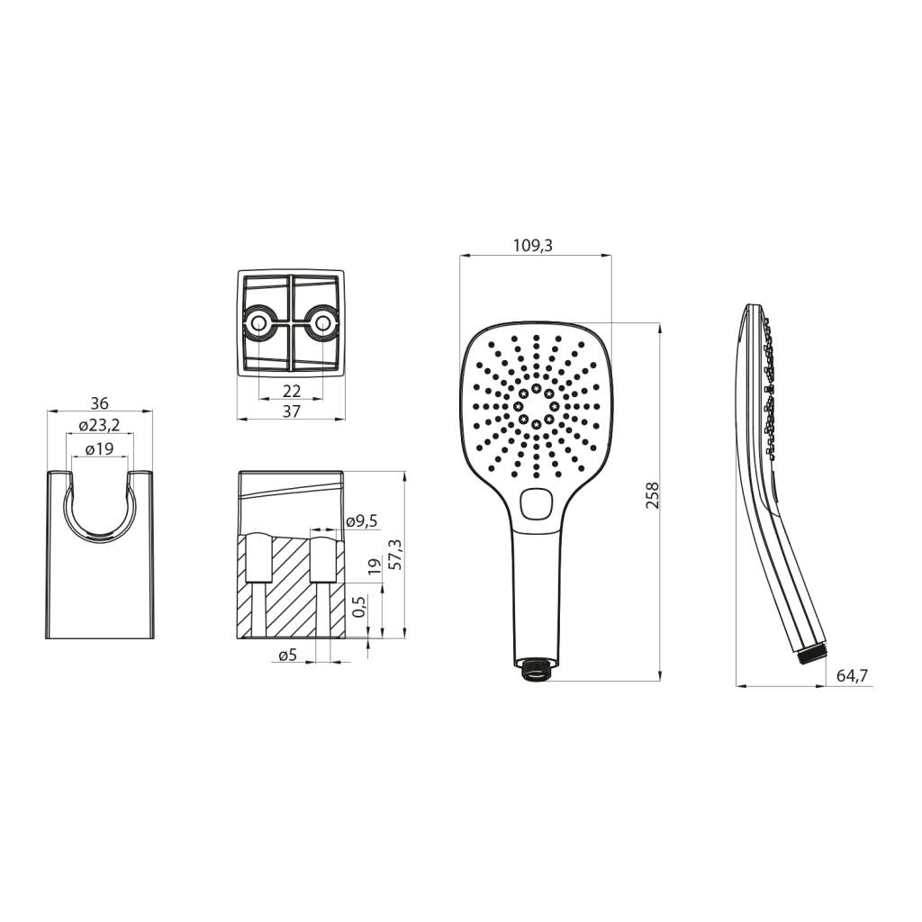 SAPHO - Sprchová súprava, 3 sprchovacie režimy, silikónové trysky, pevný držiak, hadica 1500, čierna mat (1204-62B)