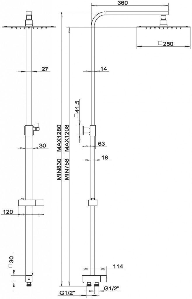 Prvotriedne chrómové prevedenie. Set je vhodný na pripojenie k vaňovej alebo sprchovej batérii so spodným vývodom. Súčasťou balenia je hlavová sprcha v SLIM DESIGN s priemerom 250 x 250 mm, kovová hadica 150 cm a 1-polohová ručná sprcha. Nastaviteľná výška setu je 830 - 1275 mm. Súčasťou balenia je pripojovacia hadička v dĺžke 70 cm.(GT)