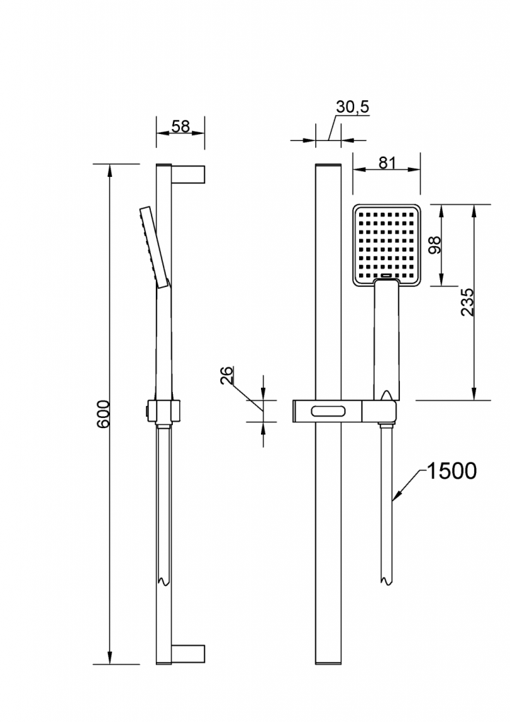 - nastaviteľný posuvný držiak ručnej sprchy