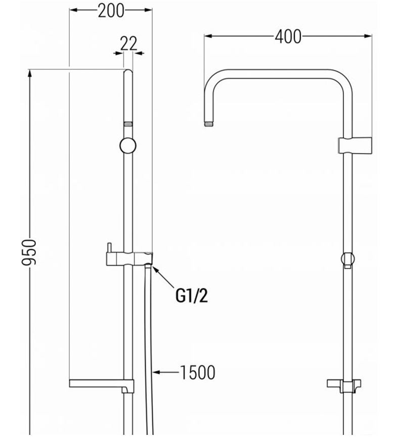 Rozmery držiaka sú: šírka lišty 22 mm, výška 950 mm a hĺbka od steny je 400 mm.