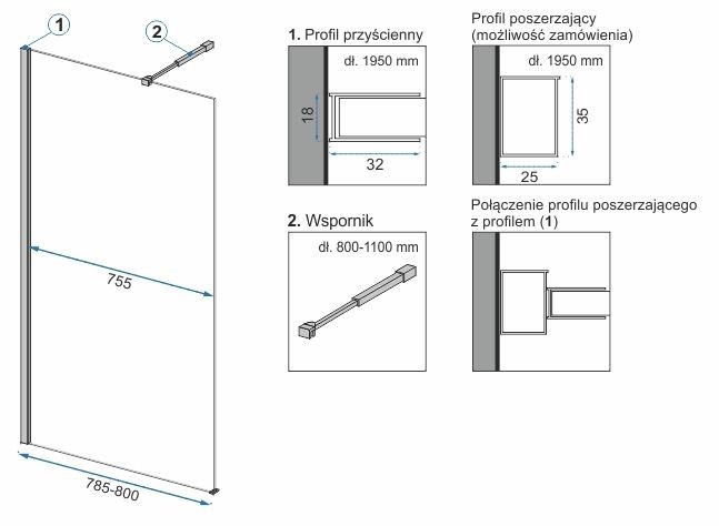 - Horná časť je istená výsuvnou konzolou, kotvenou do steny, pomocou ktorej nastavíte požadovanú veľkosť sprchového kúta.