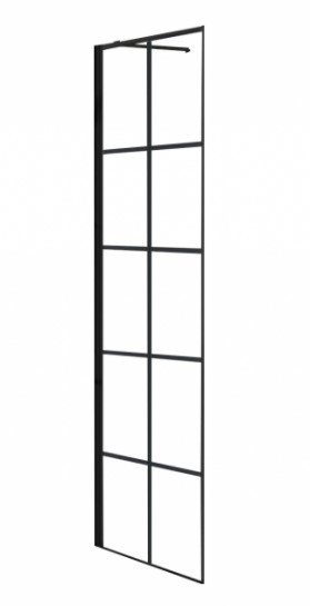 Moderný design s jemným nádychom geometrie určite osvieži akýkoľvek kúpeľňový dekor a navodí úžasnú atmosféru bez ohľadu na to, či je vnútorné usporiadanie kúpeľne poznamenané moderným, vintage alebo akýmkoľvek iným štýlom. Čierne profily v kombinácii s priehľadným sklom nie sú ničím iným ako dokonalým vyvážením designu celej zásteny. Čierne línie prebiehajúce pozdĺž steny, vytvárajúce vyvážený vzor, sú ďalšou hodnotou, ktorá poteší oko aj tých najsofistikovanejších chutí. Nastaviteľné hliníková vzpera dopĺňa celú kompozíciu svojim minimalizmom.