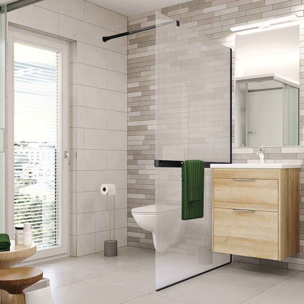 1x Sprchovú stenu WALK IN (obsahuje sklo, 1x upevňovacie rameno, spodná lišta)