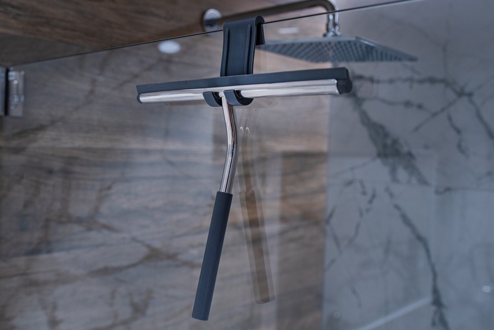 Stierka vody na sprchové kúty, vaňové zásteny a zrkadlá. Je vyrobená z nerezovej ocele a plastu. Súprava obsahuje gumový háčik, ktorý umožňuje zavesenie na okraj kabíny. Kúpeľňové vodné stierky sú stále obľúbenejšie a oplatí sa ich mať vo svojom sortimente.