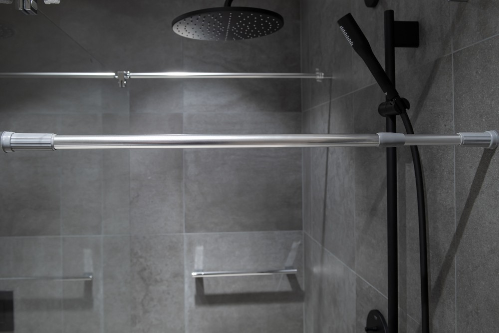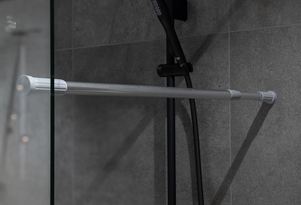 Rozpínacia tyč pre sprchový záves. Jeho inštalácia je veľmi jednoduchá a nevyžaduje vŕtanie, stačí ho umiestniť medzi dve steny a upraviť dĺžku. Vďaka gumovej, protišmykovej špičke zostane pevne na svojom mieste.
