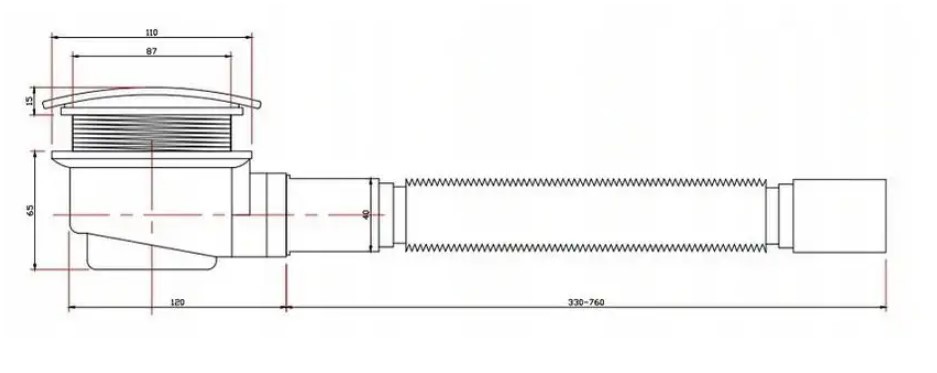 Flexibilný sifón pre sprchové vaničky s možnosťou čistenia zhora, odnímateľným lapačom nečistôt a možnosťou natiahnutia trubice podľa potreby.