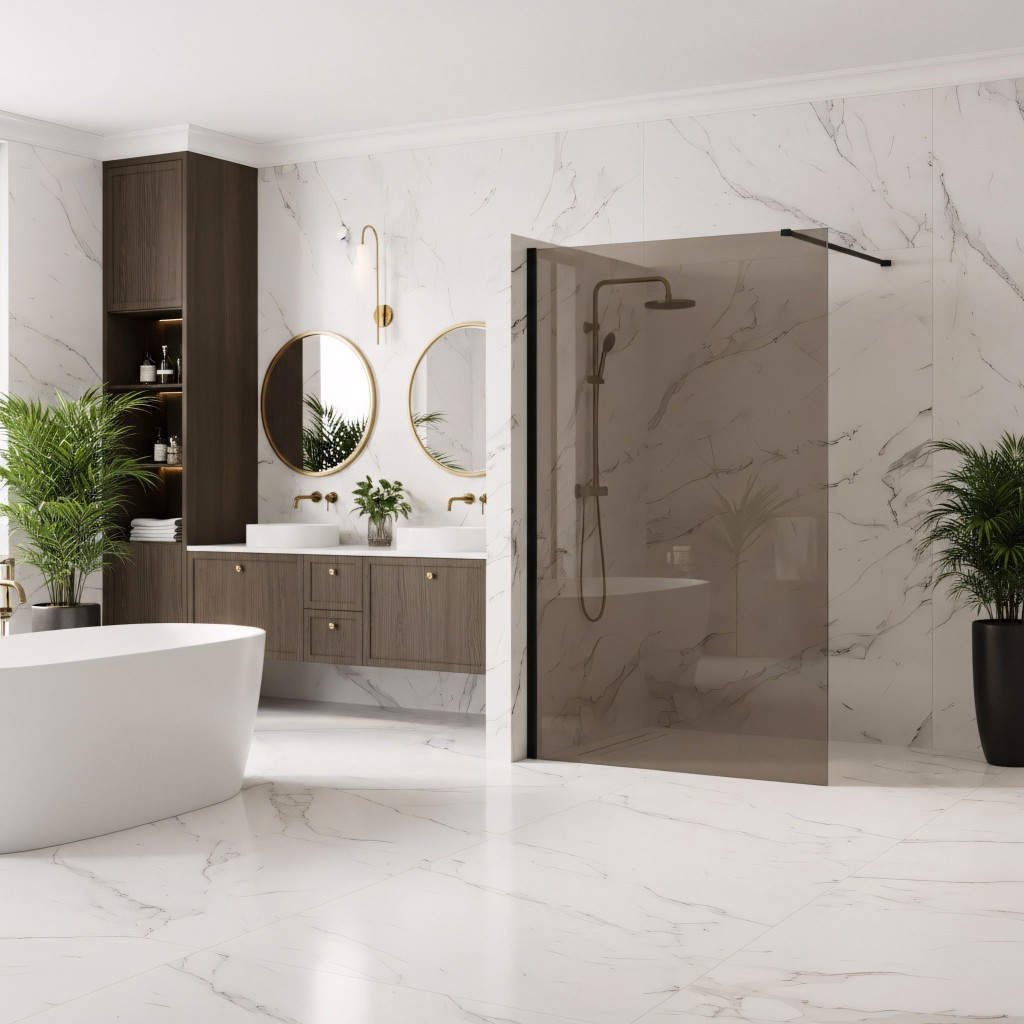 Chcete dodat své koupelně jedinečný, loftový nádech? Zvolte sprchovou stěnu walk-in Rea Flexi se sklem v odstínu Smoked Brown. Jde o efektní kombinaci výrazného profilu v barvě Černá Mat s tónovaným sklem, které poskytuje soukromí a elegantní vzhled. Konstrukce z bezpečného 8mm tvrzeného skla zaručuje dlouhou životnost a stabilitu.Tvrzené sklo 8 mm – silné, bezpečné sklo s hnědým nádechem, které vnáší do interiéru teplo a zvyšuje míru soukromí.Povrchová úprava Easy Clean – neviditelná hydrofobní vrstva usnadňující stékání vody a chránící před usazováním mýdla a vodního kamene.Hliníkový profil Černá Mat – kontrastní, matný nástěnný profil, který dokonale zapadá do industriálních trendů.Vzpěra 120 cm s možností zkrácení – horní stabilizační rameno lze zkrátit a přizpůsobit tak hloubku sprchového koutu individuálním požadavkům.Univerzální montáž – stěnu lze instalovat z pravé i levé strany, na sprchovou vaničku nebo přímo na podlahu s liniovým odtokem.Walk-in konstrukce – moderní, otevřený vstup bez pohyblivých částí, který zajišťuje bezporuchový provoz a pohodlné používání.Sprchová stěna Rea Flexi je určena pro všechny, kteří hledají neotřelá řešení. Tónované sklo v kombinaci s černými detaily vytváří luxusní sprchovou zónu. Díky povrchové úpravě Easy Clean a kvalitním materiálům spojuje tento produkt vysokou estetiku s jednoduchou údržbou.