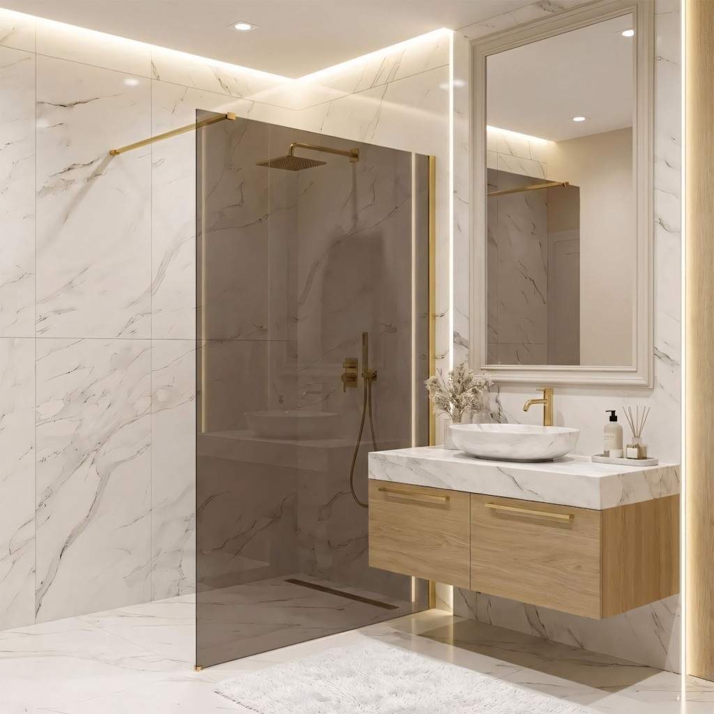 Snít o koupelně plné tepla a luxusu? Objevte sprchovou stěnu walk-in Rea Flexi v jedinečné konfiguraci: sklo v odstínu Smoked Brown a profil v barvě Brushed Gold. Toto spojení moderního tvaru a elegantního povrchu dodává interiéru výjimečný charakter. Konstrukce z bezpečného 8mm tvrzeného skla zaručuje dlouhou životnost a stabilitu.8 mm tvrzené sklo (Smoked Brown) – silné, bezpečné sklo s hnědým zabarvením, které vnáší do prostoru teplo a zajišťuje větší soukromí.Hliníkový profil Brushed Gold – luxusní kartáčované provedení profilu a ramene, které krásně ladí s hnědou skleněnou plochou.Povrchová úprava Easy Clean – neviditelná hydrofobní vrstva usnadňující stékání vody a chránící před usazováním mýdla a vodního kamene.Vzpěra 120 cm s možností zkrácení – horní zlaté rameno lze zkrátit a přizpůsobit tak hloubku sprchového koutu individuálním požadavkům.Univerzální montáž – stěnu lze nainstalovat z pravé i levé strany, na sprchovou vaničku nebo přímo na podlahu.Walk-in konstrukce – moderní, otevřený vstup bez pohyblivých částí, který zaručuje pohodlné a bezporuchové používání.Sprchová stěna Rea Flexi je určena pro ty, kteří hledají vytříbený styl. Zlaté detaily v kombinaci s hnědým sklem vytvářejí sprchovou zónu s výjimečnou atmosférou. Díky úpravě Easy Clean a kvalitním materiálům spojuje tento produkt vysokou estetiku s praktickou funkčností pro každý den.