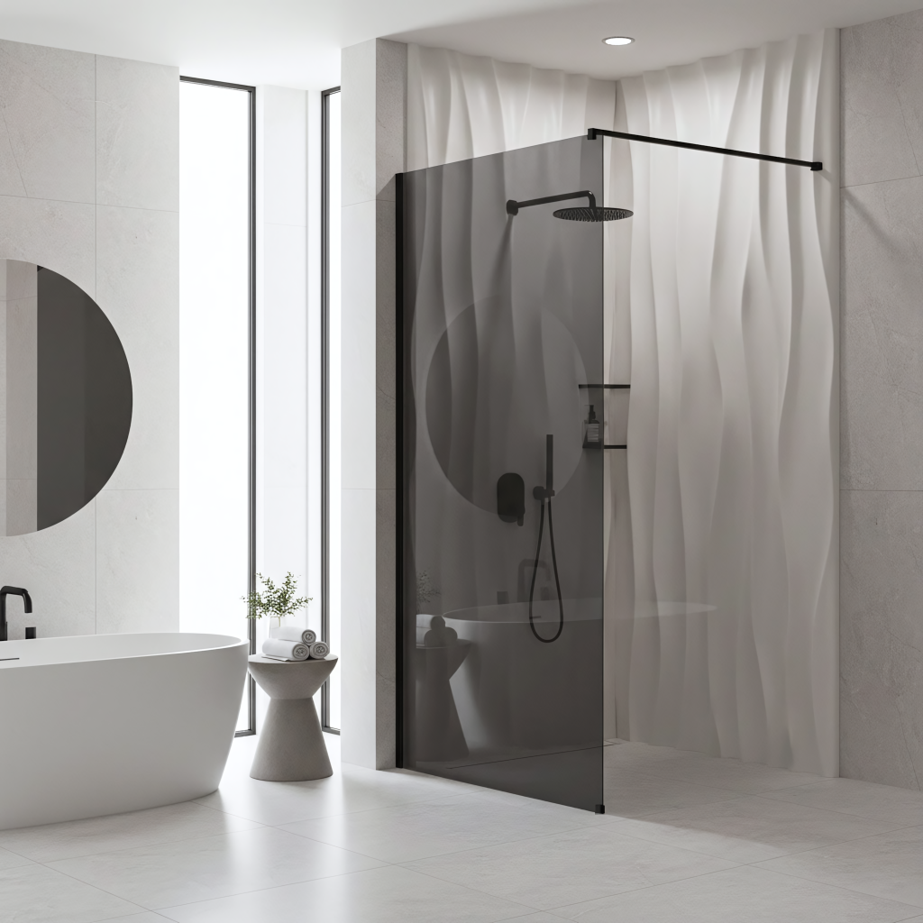 Sníte o koupelně v moderním, industriálním stylu? Zvolte sprchovou zástěnu walk-in Rea Flexi s efektním sklem v odstínu Šedá. Jde o výraznou kombinaci masivního profilu v barvě Černá Mat s tónovanou šedou skleněnou tabulí, která dodá interiéru eleganci a zajistí soukromí. Konstrukce z bezpečného 8mm tvrzeného skla zaručuje odolnost a bezpečné používání.Tvrzené sklo 8 mm (Šedé) – silné, bezpečné sklo s elegantním šedým zabarvením, které vnáší do koupelny moderní atmosféru a zvyšuje míru soukromí.Easy Clean vrstva – speciální hydrofobní povrch, který usnadňuje stékání vody a chrání sklo před usazováním vodního kamene a nečistot.Hliníkový profil Černá Mat – stylový, matný nástěnný profil v černé barvě, ideální pro loftové interiéry.Vzpěra 120 cm s možností zkrácení – horní stabilizační rameno lze snadno zkrátit a přesně přizpůsobit hloubku sprchového koutu rozměrům místnosti.Univerzální montáž – zástěnu lze instalovat na pravou i levou stranu, na sprchovou vaničku nebo přímo na podlahu s liniovým žlabem.Walk-In konstrukce – minimalistický, otevřený vstup bez pohyblivých prvků, který zajišťuje pohodlné a bezporuchové používání po mnoho let.Sprchová zástěna Rea Flexi je ideální volbou pro ty, kteří oceňují design i funkčnost. Šedá skleněná tabule v kombinaci s černými detaily vytváří luxusní a moderní sprchovou zónu. Díky vrstvě Easy Clean a kvalitním materiálům je tento výrobek nejen estetický, ale také snadný na údržbu.