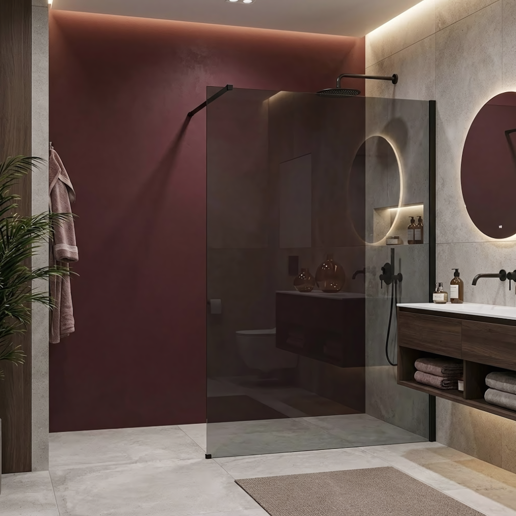 Sníte o koupelně v moderním, industriálním stylu? Zvolte sprchovou zástěnu walk-in Rea Flexi s efektním sklem v odstínu Šedá. Jde o výraznou kombinaci masivního profilu v barvě Černá Mat s tónovanou šedou skleněnou tabulí, která dodá interiéru eleganci a zajistí soukromí. Konstrukce z bezpečného 8mm tvrzeného skla zaručuje odolnost a bezpečné používání.Tvrzené sklo 8 mm (Šedé) – silné, bezpečné sklo s elegantním šedým zabarvením, které vnáší do koupelny moderní atmosféru a zvyšuje míru soukromí.Easy Clean vrstva – speciální hydrofobní povrch, který usnadňuje stékání vody a chrání sklo před usazováním vodního kamene a nečistot.Hliníkový profil Černá Mat – stylový, matný nástěnný profil v černé barvě, ideální pro loftové interiéry.Vzpěra 120 cm s možností zkrácení – horní stabilizační rameno lze snadno zkrátit a přesně přizpůsobit hloubku sprchového koutu rozměrům místnosti.Univerzální montáž – zástěnu lze instalovat na pravou i levou stranu, na sprchovou vaničku nebo přímo na podlahu s liniovým žlabem.Walk-In konstrukce – minimalistický, otevřený vstup bez pohyblivých prvků, který zajišťuje pohodlné a bezporuchové používání po mnoho let.Sprchová zástěna Rea Flexi je ideální volbou pro ty, kteří oceňují design i funkčnost. Šedá skleněná tabule v kombinaci s černými detaily vytváří luxusní a moderní sprchovou zónu. Díky vrstvě Easy Clean a kvalitním materiálům je tento výrobek nejen estetický, ale také snadný na údržbu.