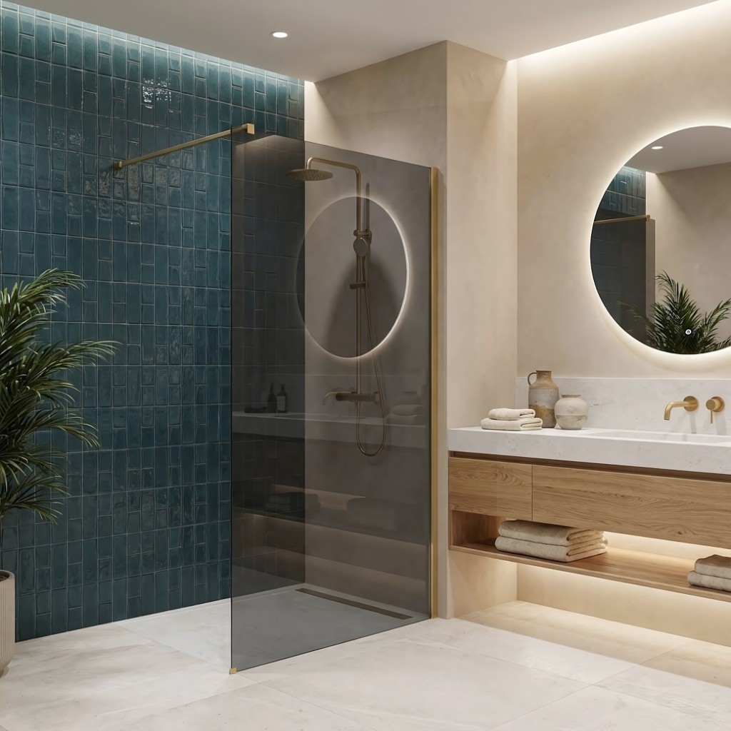 Vytvořte si v koupelně relaxační zónu s jedinečným a elegantním charakterem. Zvolte sprchovou zástěnu walk-in Rea Flexi v efektní konfiguraci: sklo v šedém odstínu a profily v barvě Kartáčované zlato. Toto spojení moderní, zatemněné tabule a teplého povrchu profilů dodává interiéru na eleganci. Konstrukce z bezpečného 8mm tvrzeného skla zajišťuje trvanlivost a bezpečné používání.Tvrzené sklo 8 mm (Šedé) – robustní tabule s elegantním šedým zabarvením, která vytváří moderní atmosféru, poskytuje soukromí a krásně kontrastuje se zlatem.Hliníkový profil Kartáčované zlato – stylové provedení nástěnného profilu, které tvoří výrazný dekorativní akcent.Easy Clean vrstva – neviditelná hydrofobní vrstva usnadňující stékání vody a chránící sklo před usazováním vodního kamene.Vzpera 120 cm s možností zkrácení – horní stabilizační rameno ve zlaté barvě lze snadno zkrátit a přizpůsobit tak hloubku sprchového koutu rozměrům koupelny.Univerzální montáž – zástěnu lze instalovat na pravou nebo levou stranu, na sprchovou vaničku či přímo na podlahu s liniovým odtokem.Walk-In konstrukce – minimalistický, otevřený vstup bez dveří, který zaručuje pohodlné používání a moderní vzhled.Sprchová zástěna Rea Flexi je určena pro ty, kteří hledají neotřelé a vkusné kombinace. Kartáčované zlaté prvky ve spojení se šedou skleněnou tabulí vytvářejí mimořádně efektní kompozici. Díky vrstvě Easy Clean a kvalitním materiálům výrobek spojuje estetiku, funkčnost i snadnou údržbu.