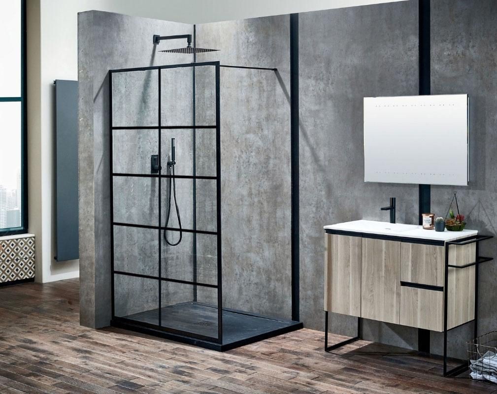 Kombinácia čiernych rámčekov a priehľadného skla nemusí byť len trendy záležitosťou dverí. Tento prvok môžete zakomponovať aj do kúpeľne v podobe sprchovej zásteny WALK-IN. Perfektne vyvážite celkový dizajn interiéru a vytvoríte elegantné miesto s nádychom industrializmu . Sprchová zástena WALK-IN je pevnou stenou, ktorú jednoducho namontujete. Jej vzhľad zvádza, aby ste ju použili ako priehľadnú stenu do výklenku. Výnimočná bude aj v kompozícii tzv. sprchového kúta walk-in, ktorý sa radí medzi jedny z najpoužívanejších prvkov moderných kúpeľní.