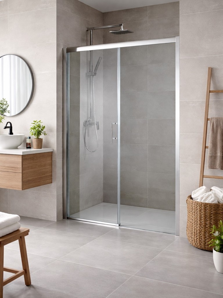 Veľmi praktické posuvné sklenené steny riešia atypické vstupy v priestranných kúpeľniach. Vďaka absencii spodného vodiaceho profilu vzniká ideálny bezbariérový vstup do sprchy. Možno dodatočne dokúpiť aj ďalšie .