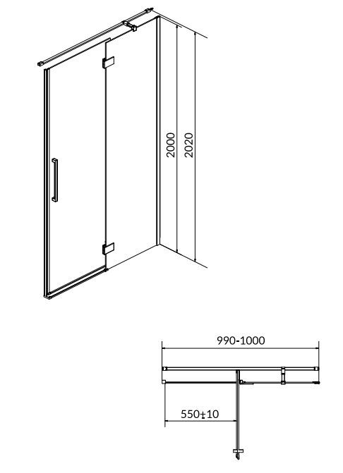 Sprchové dvere s pántami CREA 100x200, pravé, číre sklo (S159-002)