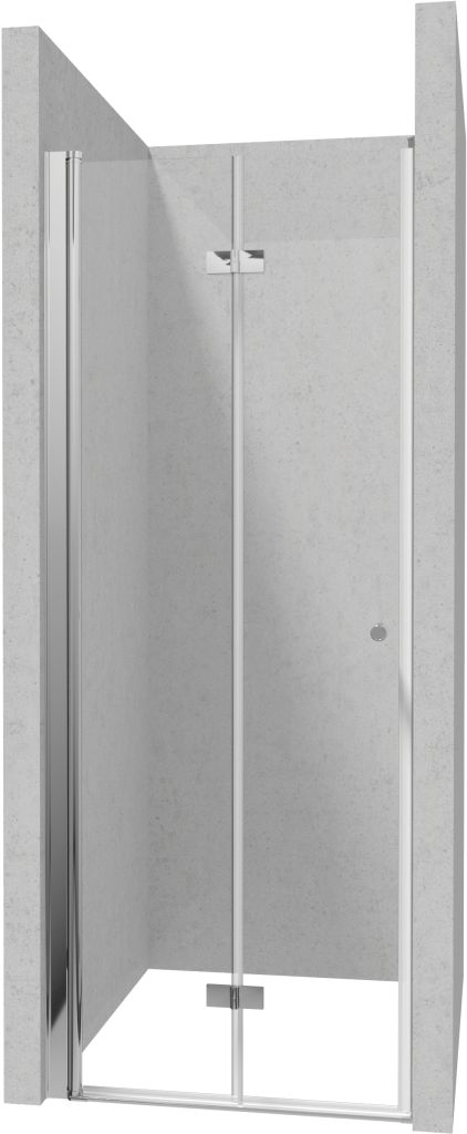 Sprchové zalamovacie dvere určené do niky KERRIA PLUS výšky 2000 mm s transparentným sklom TOTAL WHITE s hrúbkou 6 mm je podrobené procesom kalenia, kedy sa sklo stáva tvrdším, pružnejším a odolnejším. Profilový systém umožňuje kompenzovať zakrivenie stien, a majú skryté upevňovacie prvky. Moderný jednobodový úchyt je pokrytý gumovou ochrannou vrstvou. V ponuke sú rámy chrómové alebo v matnom čiernom prevedení. Dvere sa vyznačujú veľmi tichým chodom, a to vďaka magnetickému tesneniu, ktoré zmäkčuje zatváranie.