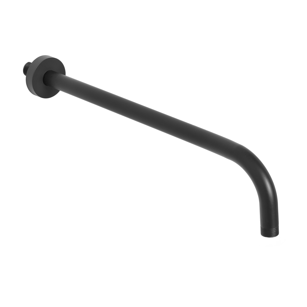 Sprchové rameno z nerezovej ocele opatrené farebnou čiernou úpravou s montážou na stenu.