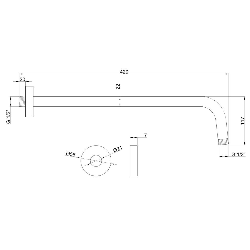Sprchové rameno s montážou na stenu, rozmery Ø 2,2 cm, dĺžka 40 cm.