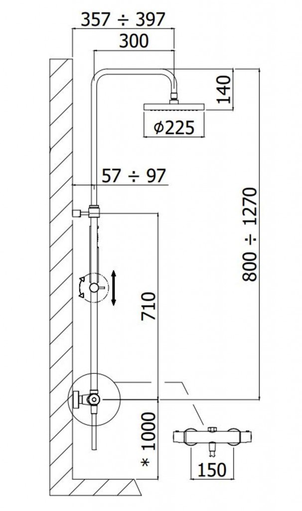 Výškovo nastaviteľný sprchový stĺp s termostatom