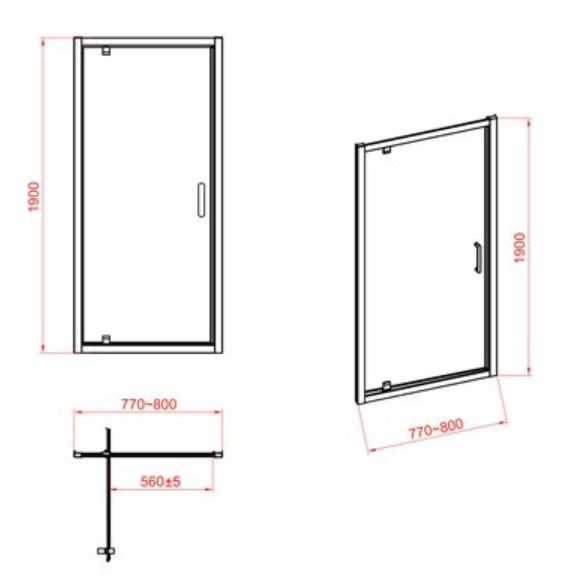 Sprchovací kút s kyvnými jednokrídlovými dverami od značky CERSANIT, ktorých profil je v chrómovom prevedení a doplnený je dvojbodovým madlom. Výplní dverí je číre sklo s povrchovou úpravou EASY CLEAN o sile 5 mm.