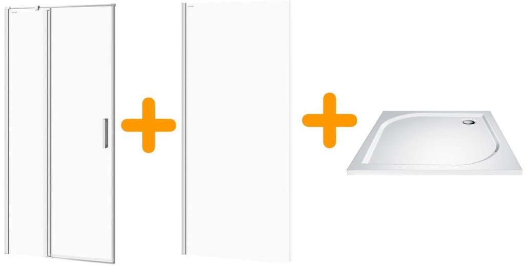SPRCHOVÝ KÚT 90x90, DVERE ĽAVÉ TRANSPARENT SKLO + vanička (S162-005-SET2)