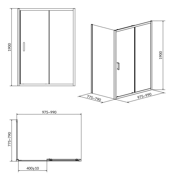 - inštalačný rozmer dvere: 985 - 1000 mm