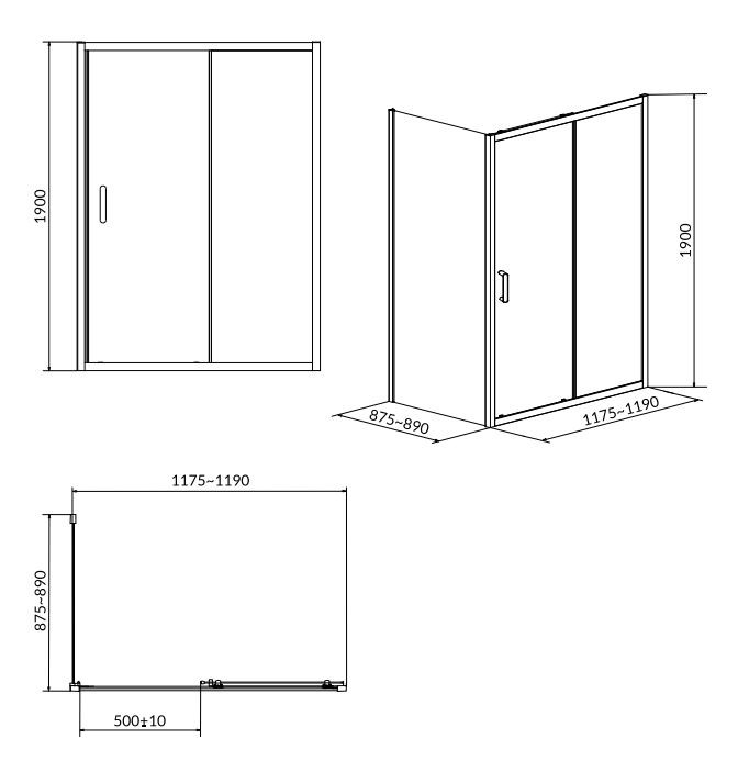 - inštalačný rozmer dvere: 1185 - 1200 mm