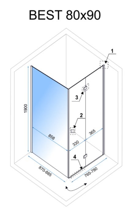 Sprchovací kút Best sa skladá zo skladacích sklenených dverí a pevnej steny zakončené elegantnými chrómovanými prvkami. Tento model je dokonalým riešením pre malé a neobvyklé kúpeľňové priestory. Dvere možno sklopiť k stene. Poskytuje neobmedzené možnosti pri praktickom používaní kúpeľne. Sklo v kabíne je vďaka povlaku Easy Clean nielen bezpečné, ale aj praktické. Vďaka tejto modernej technológii sa na skle neusádzajú žiadne usadeniny a čistenie nevyžaduje použitie silných prostriedkov.