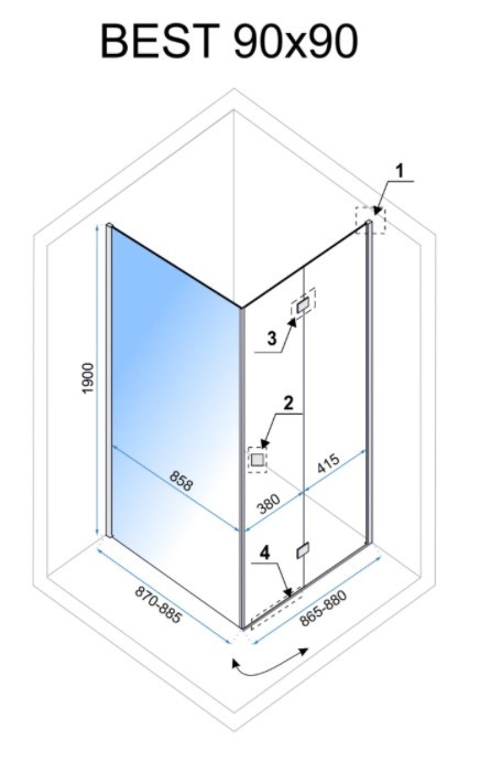 Sprchovací kút Best sa skladá zo skladacích sklenených dverí a pevnej steny zakončené elegantnými chrómovanými prvkami. Tento model je dokonalým riešením pre malé a neobvyklé kúpeľňové priestory. Dvere možno sklopiť k stene. Poskytuje neobmedzené možnosti pri praktickom používaní kúpeľne. Sklo v kabíne je vďaka povlaku Easy Clean nielen bezpečné, ale aj praktické. Vďaka tejto modernej technológii sa na skle neusádzajú žiadne usadeniny a čistenie nevyžaduje použitie silných prostriedkov.