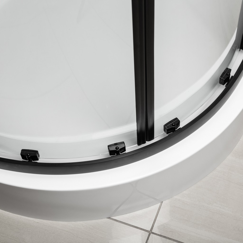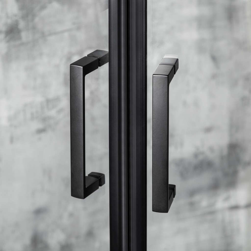Použitie dvojkrídlových posuvných dverí umožňuje pohodlné otváranie bez nutnosti udržovať voľný priestor pred kabínou. Priehľadné tvrdené sklo s hrúbkou 5 mm zaisťuje odolnosť proti nárazu a bezpečnosť pri každodennom používaní. Hliníkové profily s čiernou povrchovou úpravou , odolné voči vlhkosti a korózii, zaručujú štrukturálnu stabilitu.