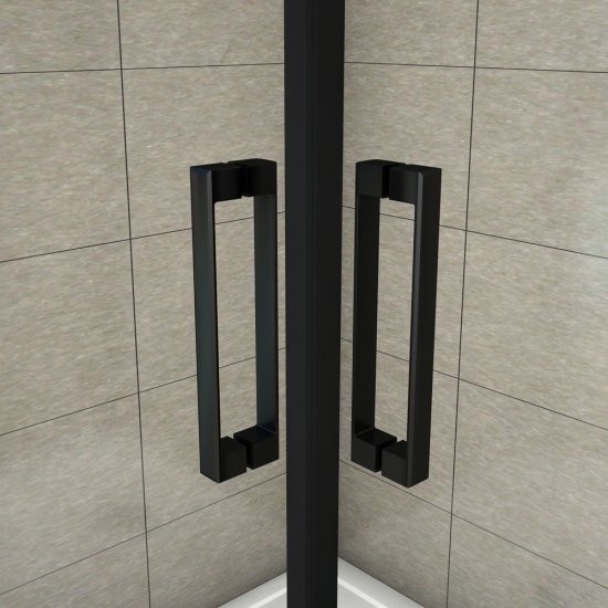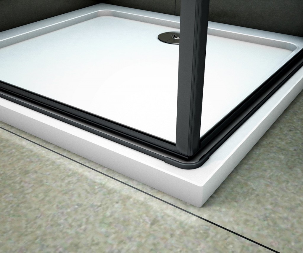 Tento štvorcový sprchovací kút môžete kúpiť v troch rozmeroch a to aj v rámci sete spoločne s kvalitnou sprchovou vaničkou z liateho mramoru, ktorá bude s čiernymi líniami sprchových dverí v dokonalej súhre. Inštalácia je však možno aj priamo na dlažbu za využitie odtokového kanálika.