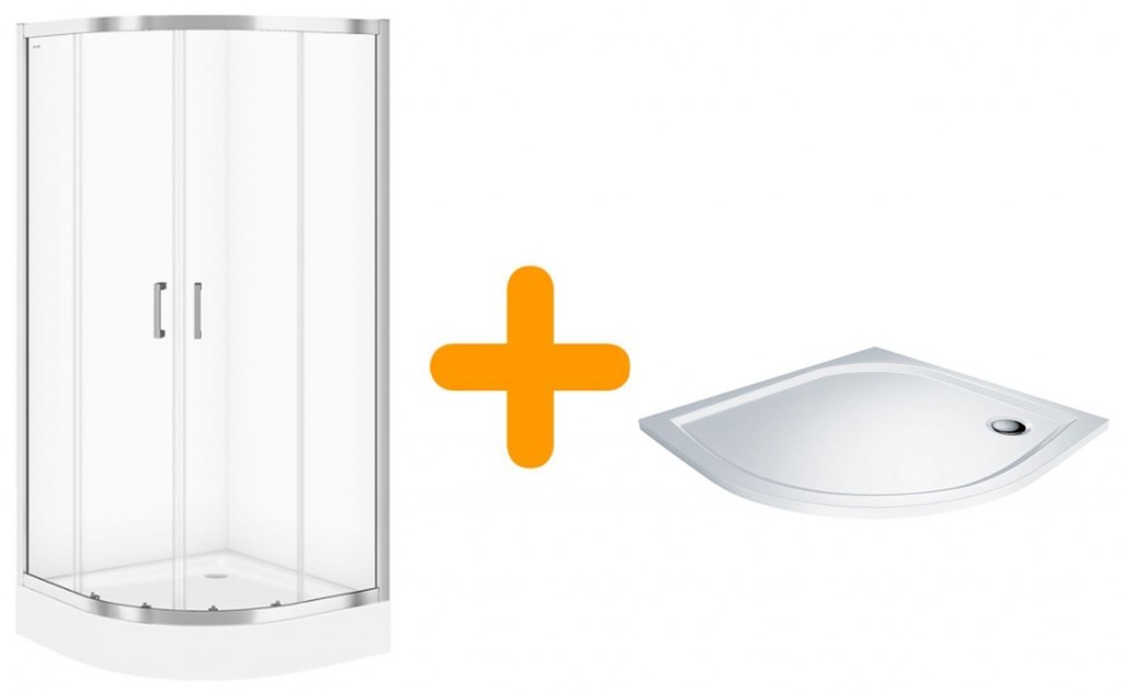 SPRCHOVÝ KÚT štvrťkruh 90x90 TRANSPARENT SKLO + vanička (S158-005-SET1)