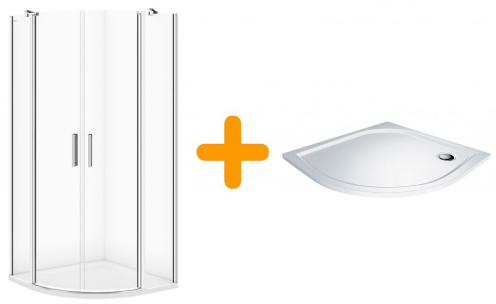 SPRCHOVÝ KÚT štvrťkruh 90x90 TRANSPARENT SKLO + vanička (S162-010-SET1)