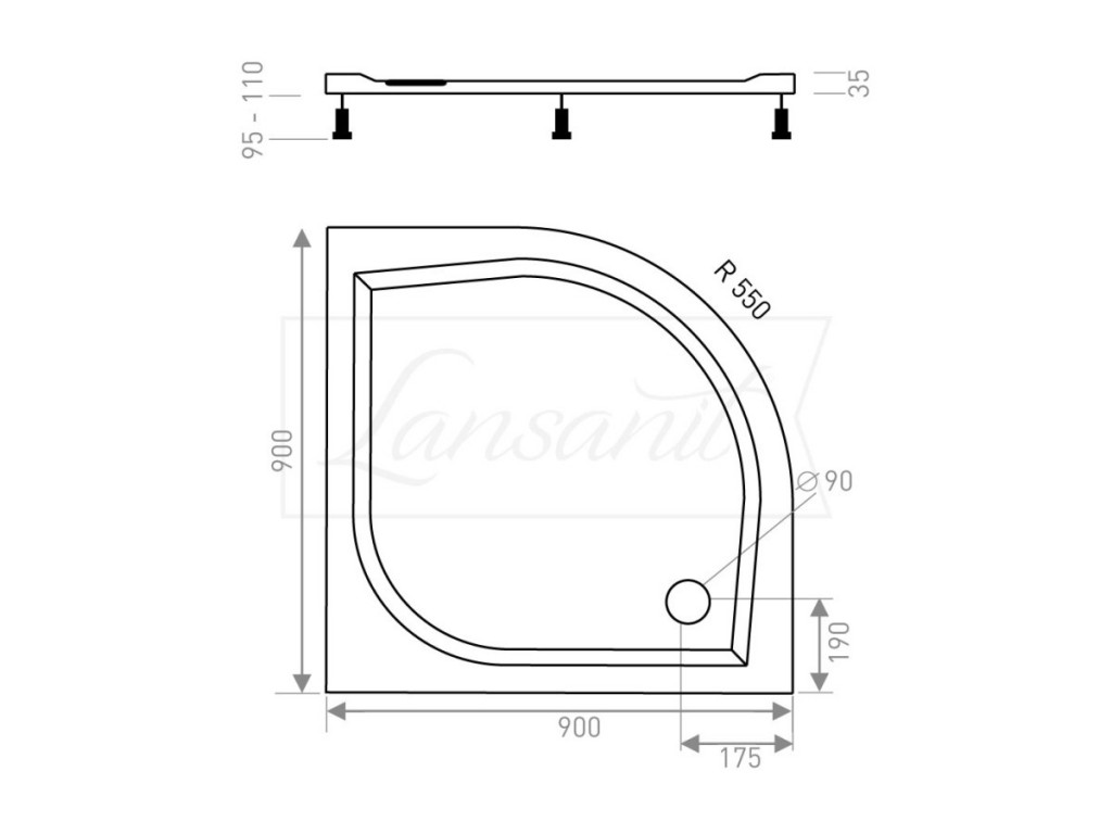 • Rozmer vaničky: 900x900 mm