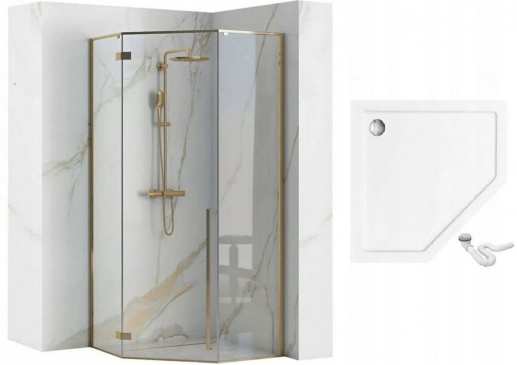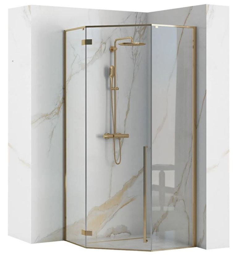 Štýlový sprchovací kút Rea Diamond Gold 80×80 cm je vyrobený z bezpečného priehľadného tvrdeného skla. Model je vhodný na montáž na podlahu alebo sprchovú vaničku. Návod
