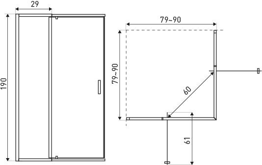 Sprchovací kút Dunaj 2-D bez sprchovej vaničky je moderným a flexibilným riešením pre kúpeľne rôznych rozmerov. Vďaka nastaviteľnej konštrukcii umožňuje presné prispôsobenie – možno ho inštalovať ako 80×80, 80×90, 90×90 a ďalšie podobné varianty . Maximálny rozmer je 90 × 90 × 190 cm.