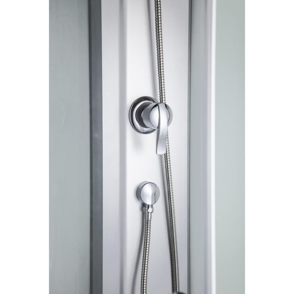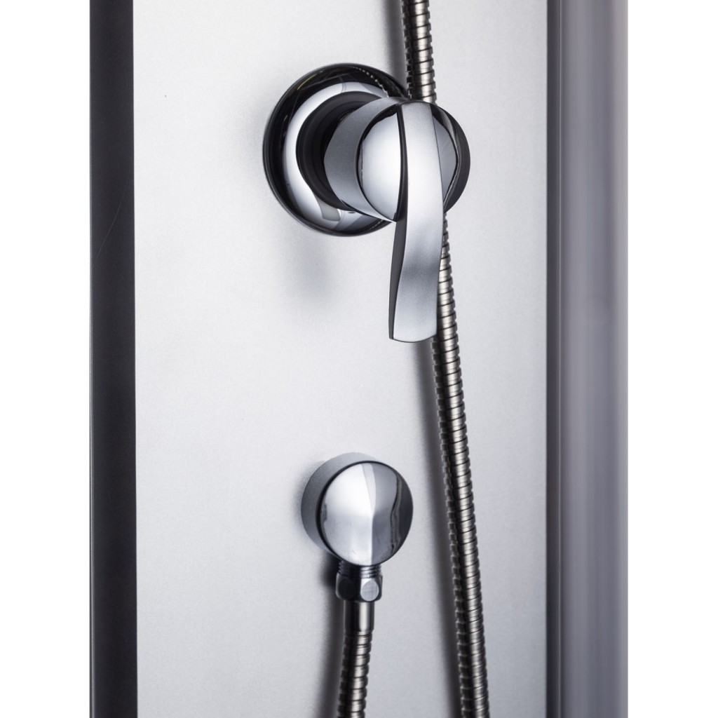 Bezpečnostné tvrdené sklo s hrúbkou 4 mm má predné časti číre s grafitovým odtieňom, ktorý zaisťuje čiastočné znepriehľadnenie a zároveň ľahkú údržbu. Na zachovanie čistého vzhľadu odporúčame používať stierku na sklo, ktorá pomáha predchádzať tvorbe vodných škvŕn a matnému filmu.