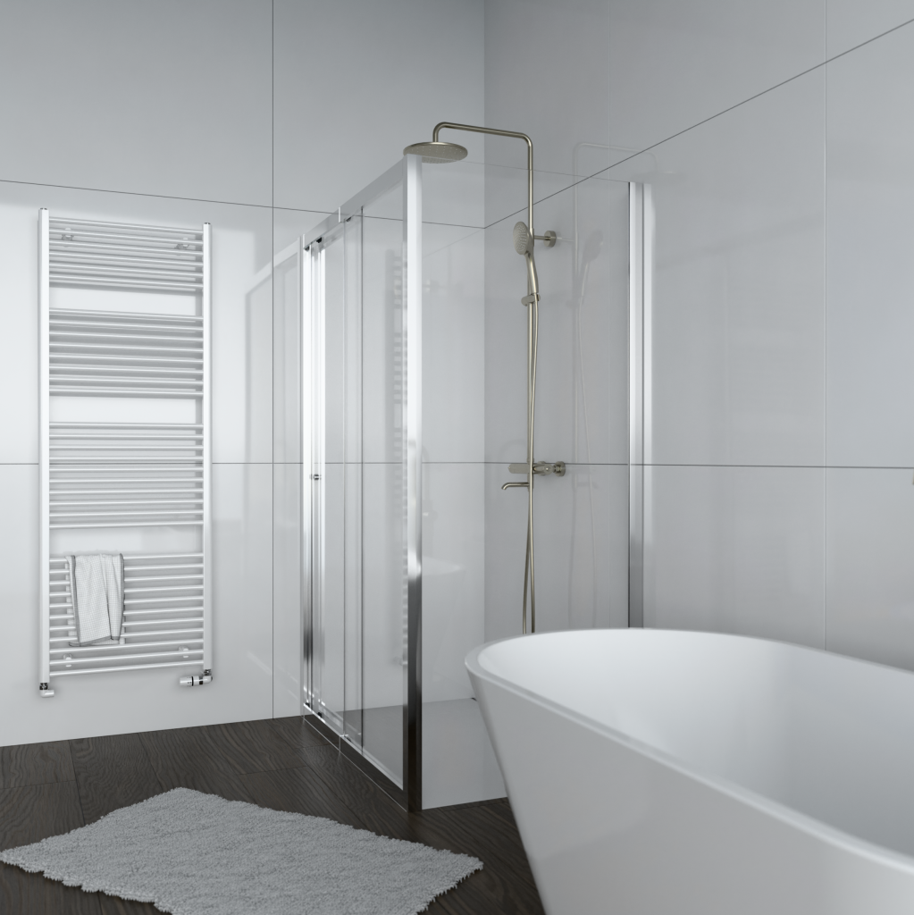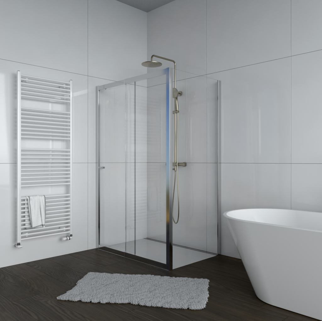 Moderný rohový sprchovací kút FLEXI kombinuje čistý design, chrómové detaily a kvalitné spracovanie. Skladá sa z posuvných dverí, pevnej bočnej steny a sprchovej vaničky. Vďaka číremu bezpečnostnému sklu a robustnej konštrukcii ponúka komfort, estetiku aj dlhú životnosť.