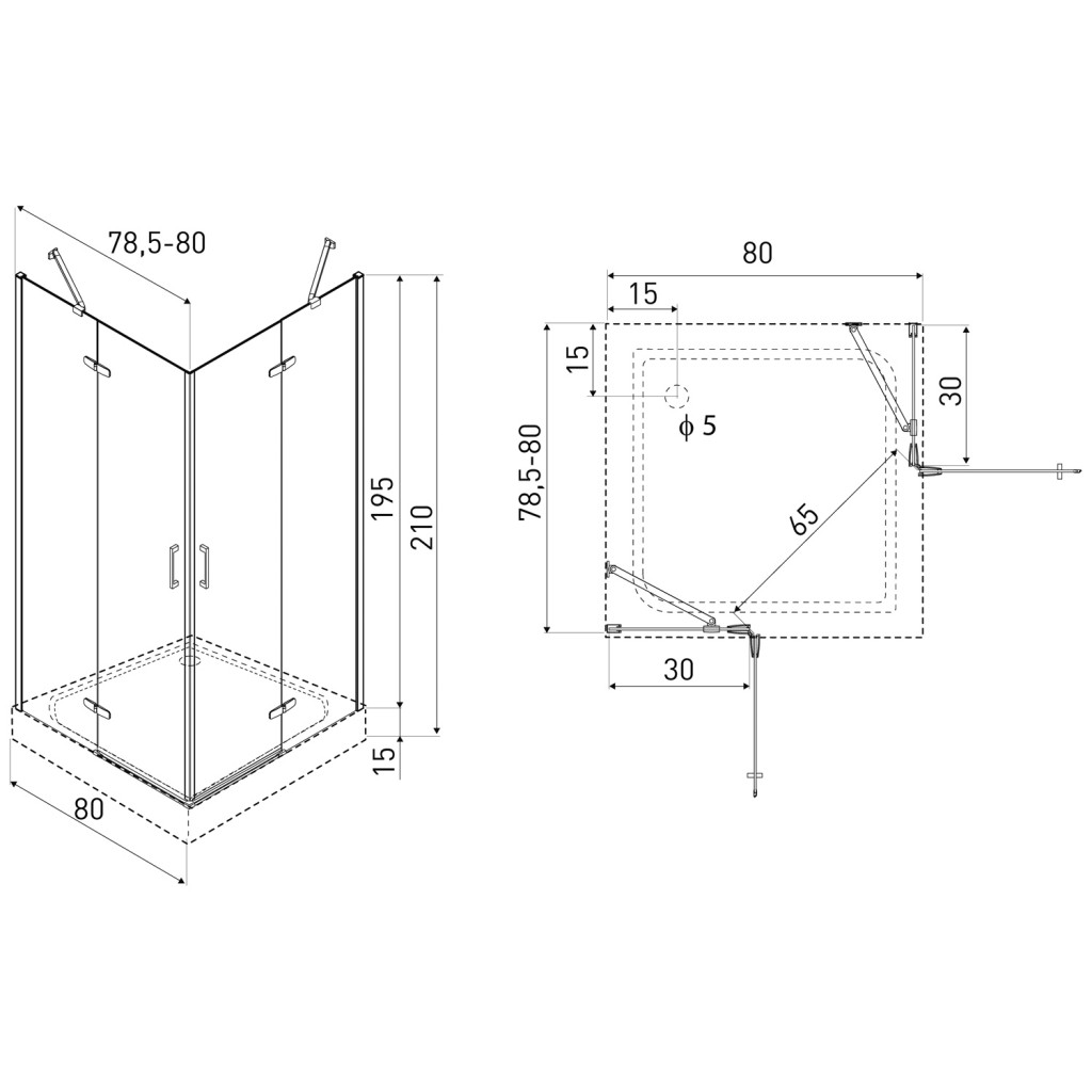 Štvorcový sprchovací kút je dodávaný so sprchovou vaničkou s rozmermi 8 0 x 80 x 15 cm. K vaničke je potrebné dokúpiť sifón – odporúčame model Speed s priemerom 50 mm pre optimálny odvod vody.