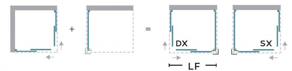 V prípade voľby obdĺžnikového kúta zakúpiť každú stranu s iným rozmerom (napríklad pri kúpe sprchovacieho kúta v rozmere 120× 80 cm je nutné zakúpiť jeden diel 77,5 – 80 cm a jeden diel 117,5 – 120 cm).
