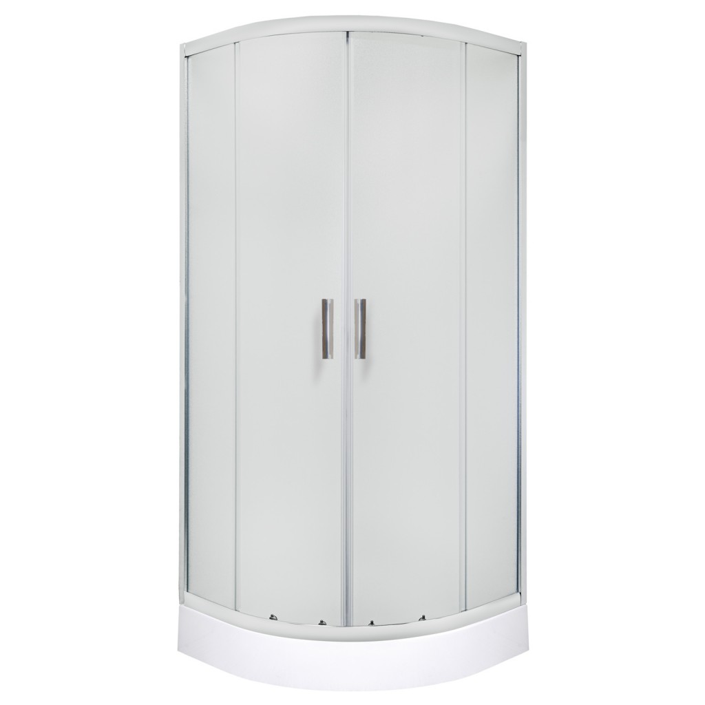 Štvrťkruhový sprchovací kút je dodávaný so sprchovou vaničkou o rozmeroch 80 x 80 x 14 cm. K vaničke je potrebné dokúpiť sifón – odporúčame model Speed s priemerom 50 mm na optimálny odvod vody.