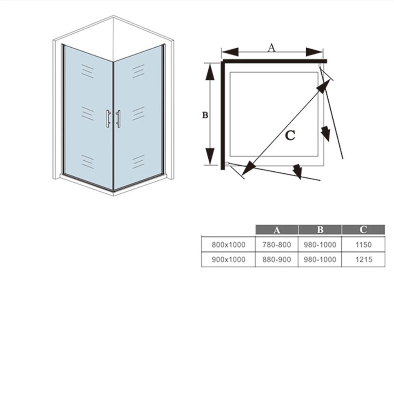 Rozmer sprchových dverí: 980-1000x1950 mm