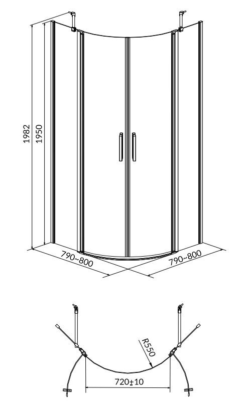 Sprchovací kút MODUO štvrťkruh 80x195, kývne, číre sklo (S162-009)