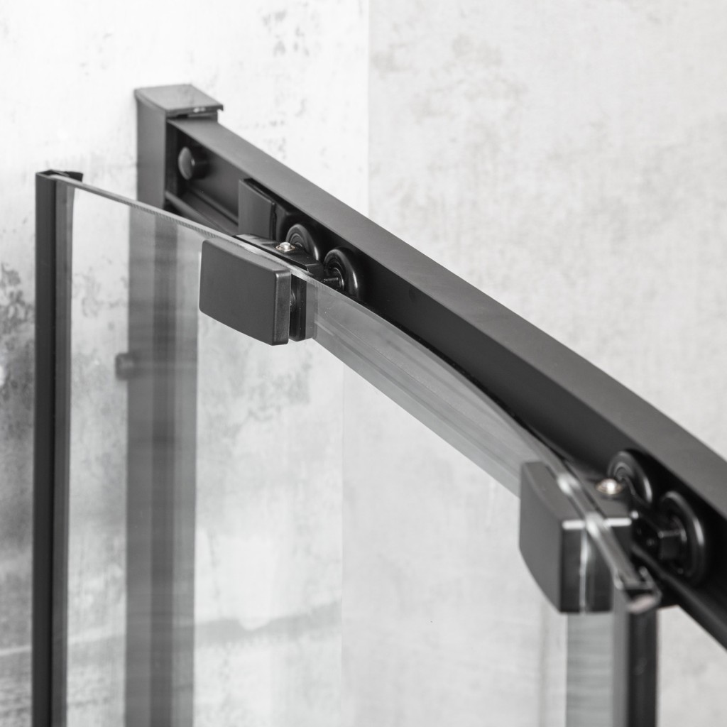Robustné hliníkové profily s čiernou povrchovou úpravou sú odolné voči vlhkosti a bez problémov sa hodia na ostatné kúpeľňové vybavenie. Sada obsahuje 16 cm vysokú bielu akrylátovú sprchovú vaničku , ktorá zaisťuje pohodlné kúpanie a jednoduché čistenie.
