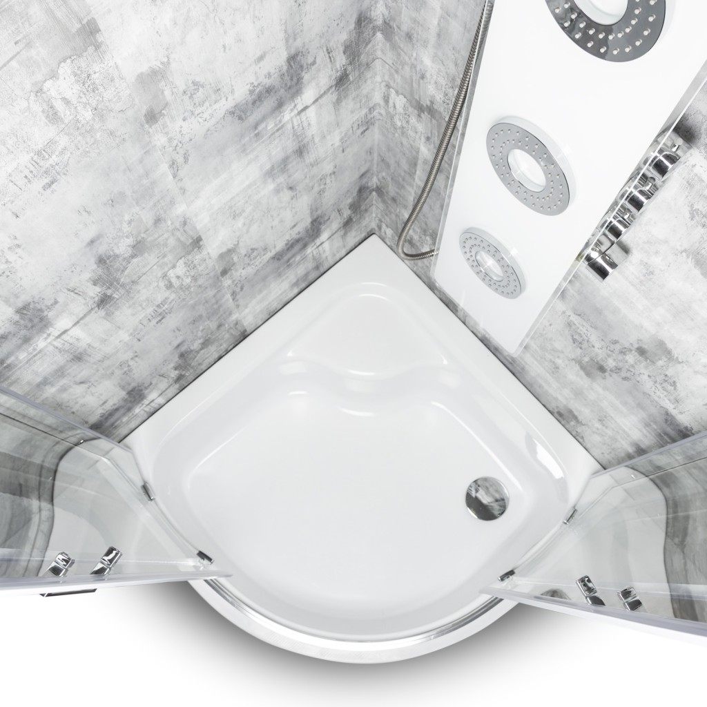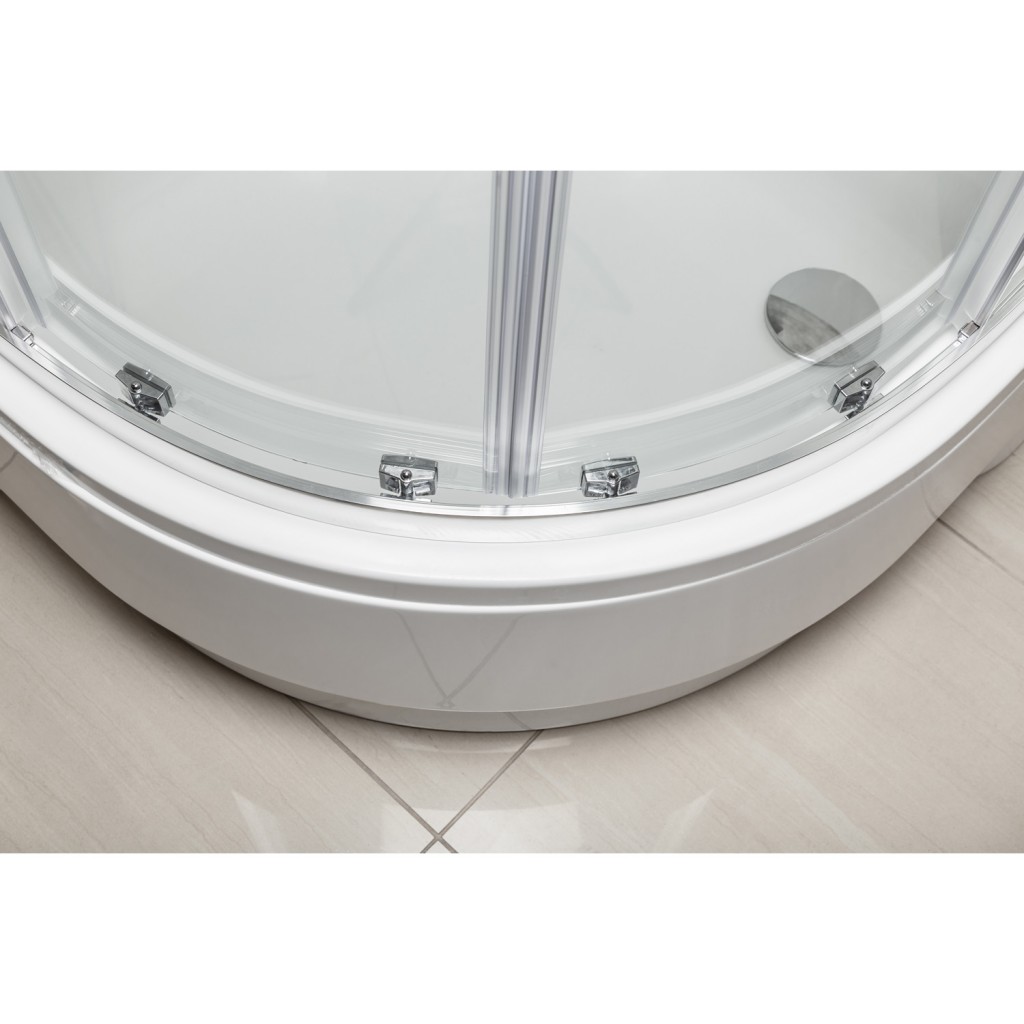 Tento sprchovací kút s hlbokou vaničkou je funkčná sada, ktorá sa hodí do moderných aj klasických kúpeľní. Vďaka svojmu polkruhovému dizajnu je ideálny pre rohovú inštaláciu, šetrí miesto a zaisťuje pohodlie.