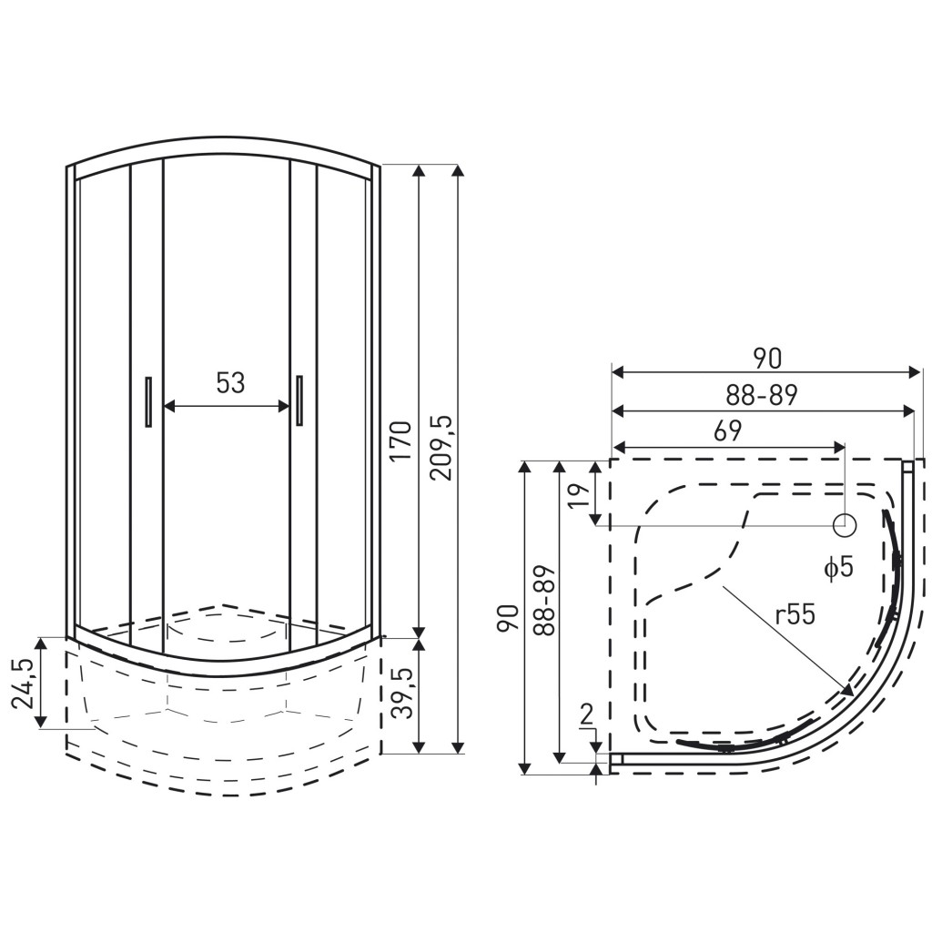 Tento sprchovací kút s hlbokou vaničkou je funkčná sada, ktorá sa hodí do moderných aj klasických kúpeľní. Vďaka svojmu polkruhovému dizajnu je ideálny pre rohovú inštaláciu, šetrí miesto a zaisťuje pohodlie.