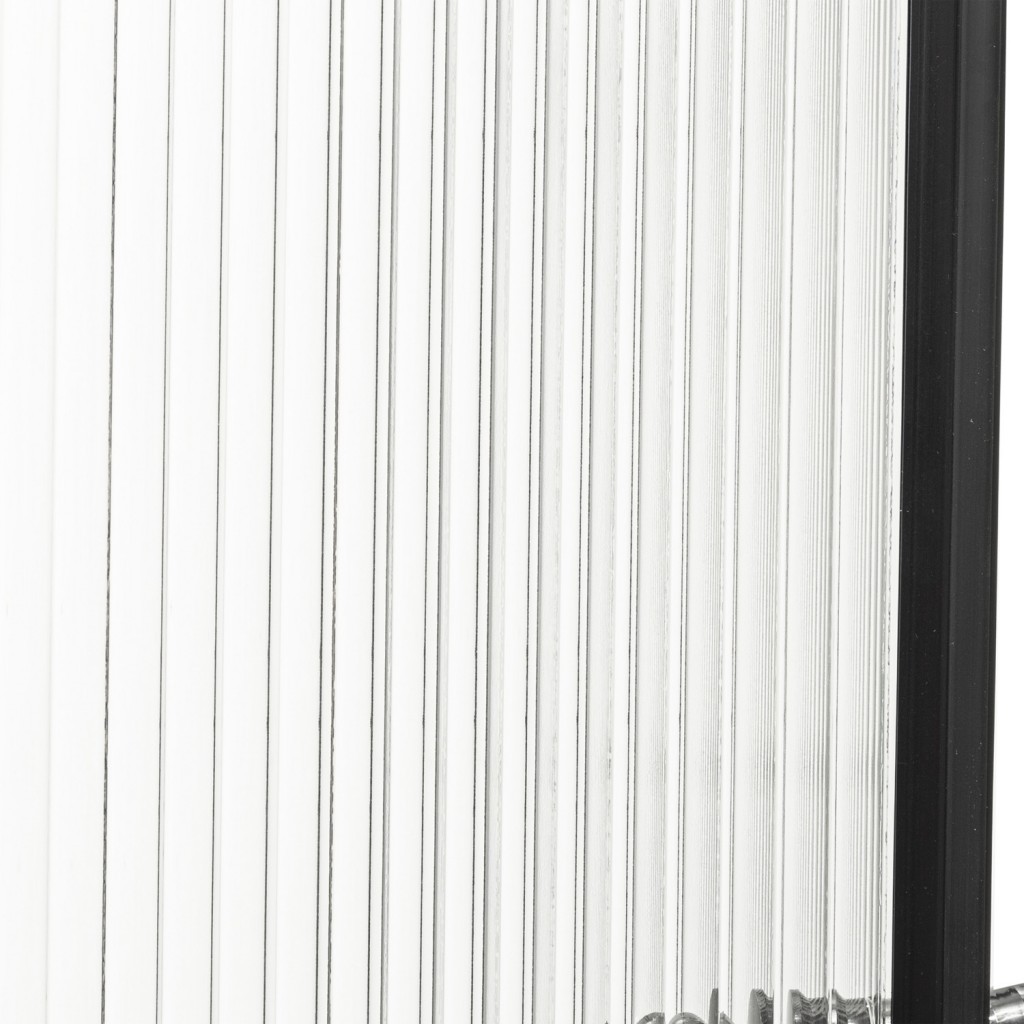 Bezpečnostné tvrdené sklo s hrúbkou 6 mm má dekoratívnu štruktúru " ryhovania ", ktorá zaisťuje čiastočné znepriehľadnenie a zároveň jednoduchú údržbu. Na zachovanie čistého vzhľadu odporúčame používať stierku na sklo, ktorá pomáha predchádzať tvorbe vodných škvŕn a matnému filmu.