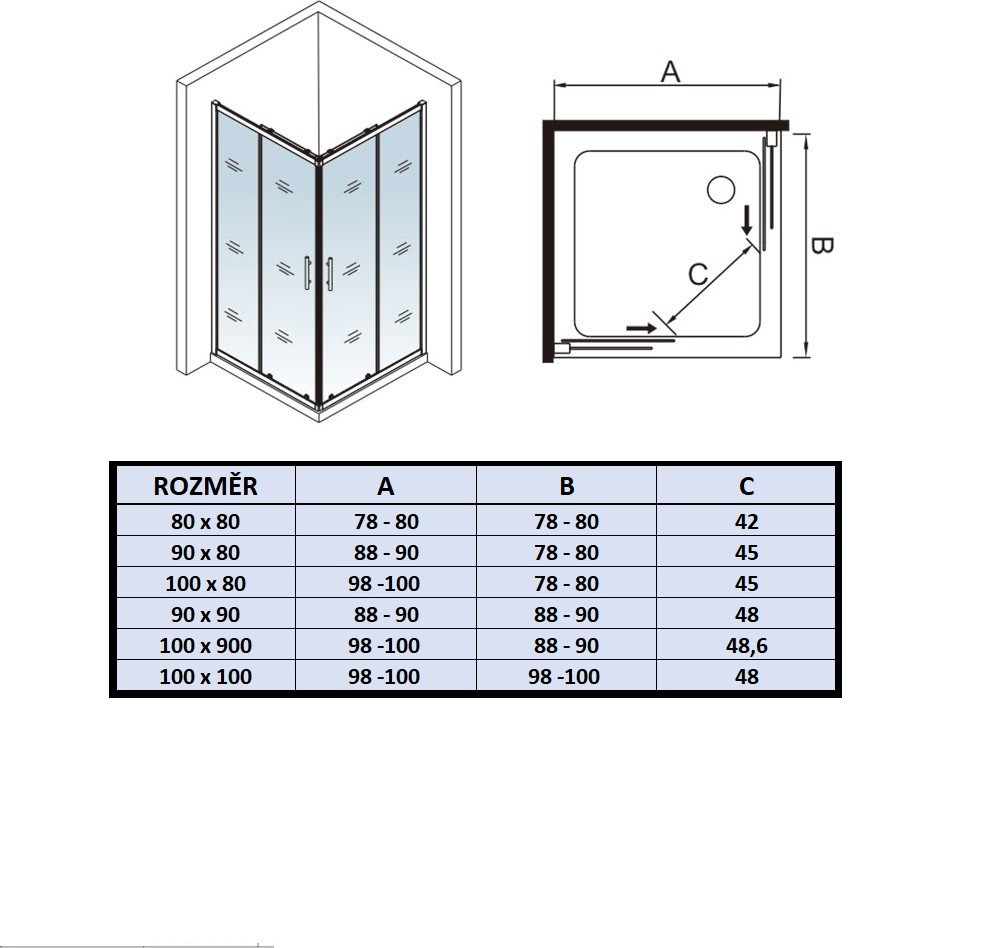 Rozmer sprchových dverí : 98-100 cm x 88-90 cm