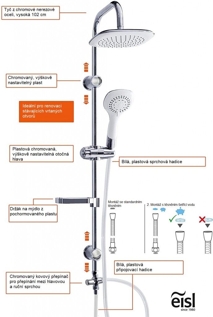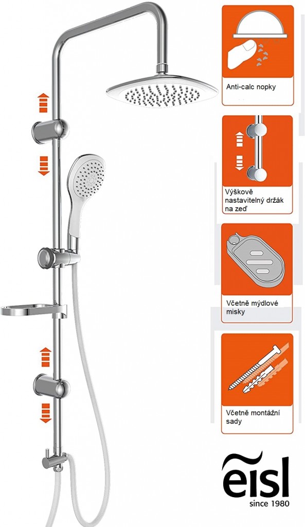 Sprchový stĺp Dream vyniká kvalitným chrómovaním doplneným plastovými komponenty.